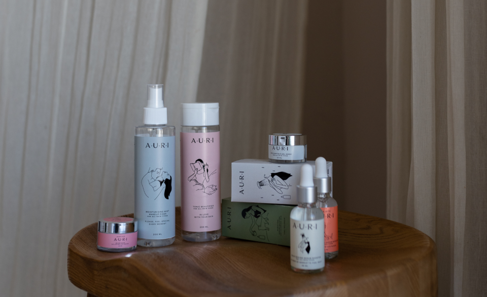От успокаивающей маски с лекарственными травами и Д-пантенолом до тоника-бьютифаера с соком листьев алое. Но флагманский продукт AURI — это сыворотки с высокой концентрацией пептидов.